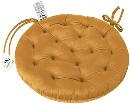 - TUFTED DESIGN for style and comfort. Feature 16 tufts that makes the chair pads comfortable and well balanced. 12″ REINFORCED TIES will stay attached to the cushion and to your chair. Our seat cushions have full-length ties, long enough to reach around most chair legs, securing the cushion firmly in place. EASY CARE spot clean only. The chair pads are reversible, the same on both sides.