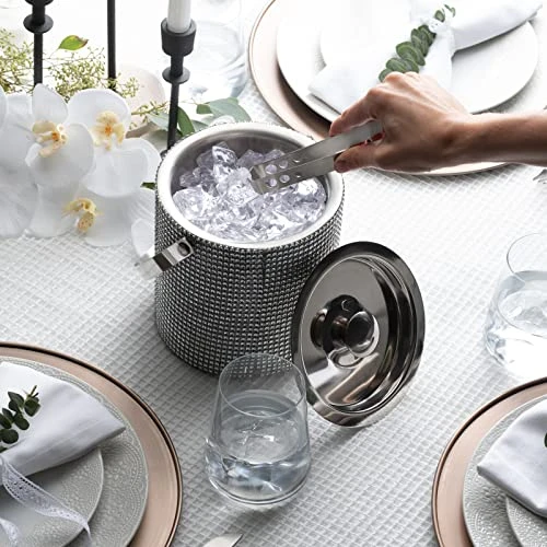 - These ice bucket is studded with fashionable rhinestones to add a pop of class and elegance to the look. To ensure best results hand wash only.