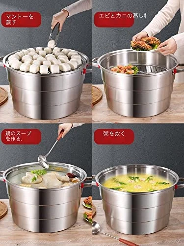 - Features: The all-stainless steel handle provides high heat retention, and the rivet reinforcement makes it sturdy and durable. Steamer/Boiler Extra Large Thick Extra Large Capacity 3 Layers Commercial Household Steamed Buns 40 45 50 cm Stainless Pot