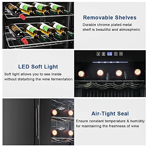 - Sleek Black Design: The black color of the wine cooler complements any decor and adds a touch of elegance to your home. Enjoy a sleek and stylish design that enhances your collection and adds sophistication to your home with 28-bottle wine fridge.