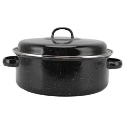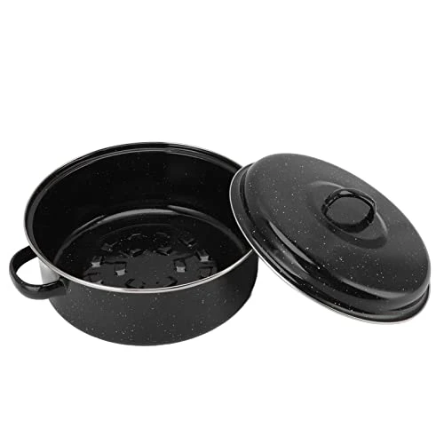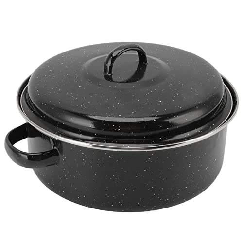 - 【EXQUISITE】Our deep roaster with black enamel speckled finish, well polished, makes for a great pot. Exquisite craftsmanship, persistence in pursuit of perfection, and ingenious quality, used for roasted sweet potatoes, barbecued meat, barbecue, etc.