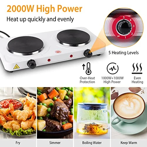 - STURDY CONSTRUCTION AND POWERFUL COOK TOP: With 1-5 heating temperature adjustment, easily meet your daily cooking needs, such as boiling water, reheating sauces, making soups, frying steak, cooking pasta, grilling cheese and vegetables, etc.. Independent adjustable thermostat controls and indicator lights for convenient operation