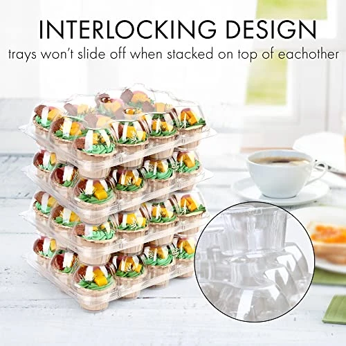 - Stackable Design for Transport: The plastic cupcake containers are stackable; with interlocking lids and bottoms; Perfect for stacking and displaying on a table or shelf and for transport
