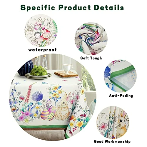 - 【Perfect For Easter】: stain and wrinkle resistant tablecloths with elegant pattern will not only add to the beauty of your home but will also make your meal-time both fun and relaxing. Dress your table with this Easter day table cloth to have your dinnerware stand out with its unique design.