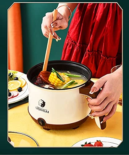 - 【Mini Multifunctional Electric Hot Pot】Mini cooking soup pot noodle pot, perfect for stewing, cooking noodles, soup, porridge, dumplings, eggs, cereals and other kinds of delicious food, also can be used to fry steak, chicken, stir fry, cook noodles, eggs, fondue and so on. Cook a variety of cuisines for you.