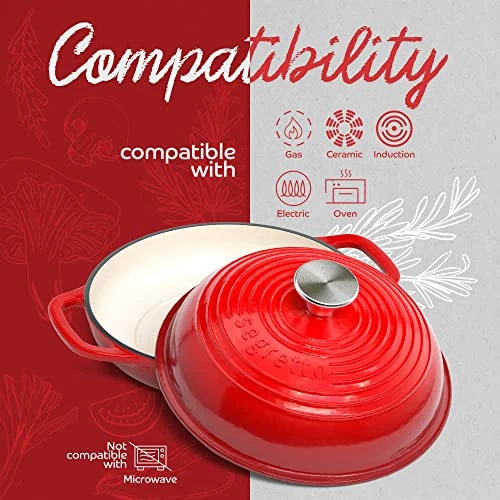 - VERSATILE DUTCH OVEN FOR BREAD BAKING. Our large and wide enameled cast iron bread dutch oven with lid allows for baking all types of bread- round loaves, batard oval loaves, demi baguettes, sourdough, and even focaccia bread.