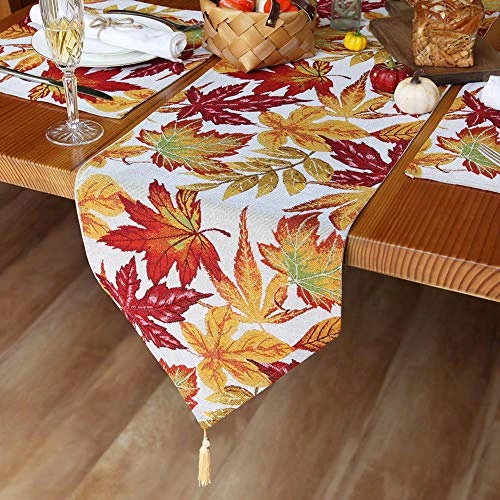 - 🍁Fall Decorations: The maple leaves design of this holiday table runner helps create a perfect harvest fall table setting. Yellow tassels on both ends. Good for all occasions not limit to fall season, Thanksgiving parties and everyday use.