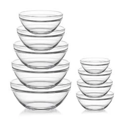 - Sized for every tasks – With range of 9-Sizes 1.2,2.8,5 oz.0.9,1.5, 2.5,4.8 cup.2 and 3 quart, glass mixing bowls add versatility and functionality to your kitchen. For all-purpose kitchen workhorses from prepping, mixing, stirring, to kneading dough like a pro.