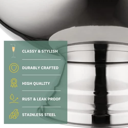 - HIGH QUALITY UNIQUE DESIGN– Durably and ingeniously crafted ice buckets with high quality rust proof stainless steel. This beautiful bowl will last a long time and serve you well as it is leak proof and provides easy clean-up. Say goodbye to wet and slippery surfaces caused by traditional ice buckets. This innovative ice bucket is designed to solve the condensation and sweat problems you’ll face with other buckets
