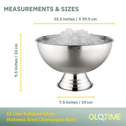 Glotime Ice Bucket For Parties – Silver Stainless Steel Champagne Bowl – Punch Bowl – Pedestal Base, Party Sized, 12L