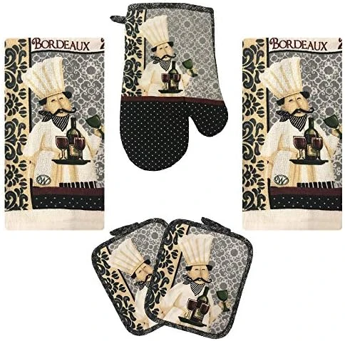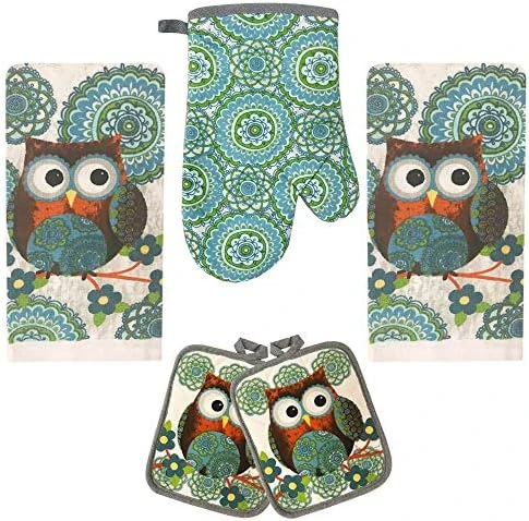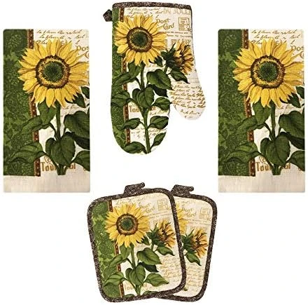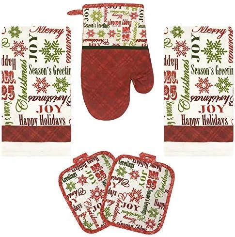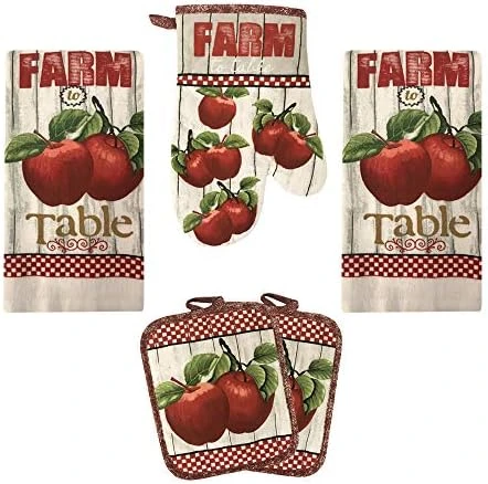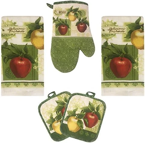 - 5 piece kitchen linen set: This versatile kitchen set includes one kitchen towel, one oven mitt, one pot holder and two dish cloths. These cute oven mitts and dish towels will keep your kitchen looking stylish and coordinated all year round.