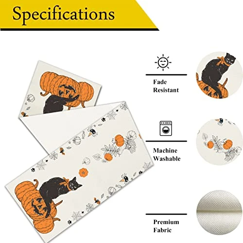 - 【Soft&Sturdy Material】The Halloween table runners are made of sturdy burlap material.Autumn decor table runners are soft and sturdy sewing,no smell and will not fade. Use the cute cat burlap table runner provide to protect your furniture from scratches and spills.