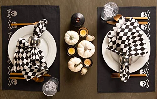 - CREATE A FUN & RELAXED PLACE SETTING: Set of four placemats measure 13×19-inches with decorative skulls along the bottom