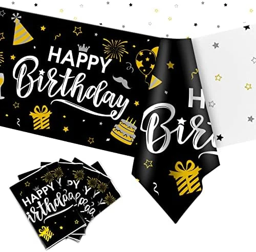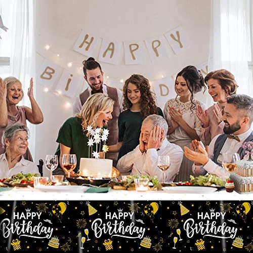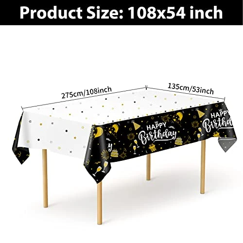 - 【Large size for Decor】: One order with 1 piece of happy birthday black and gold table cloths, measures 54x108inch/137x274cm, it’s long and large enough for table decorations for your birthday party, making your birthday party impressive and memorable.