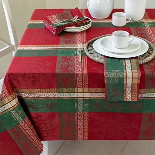 - Effortlessly dress up your holiday décor with this festive tablecloth.