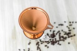 - {BETTER BREWING} Our pour over coffee filter is made of high quality copper coated stainless steel. Its reinforced steel mesh is extra durable, allowing brewing at the perfect rate and making your cup of coffee just the way you like it.