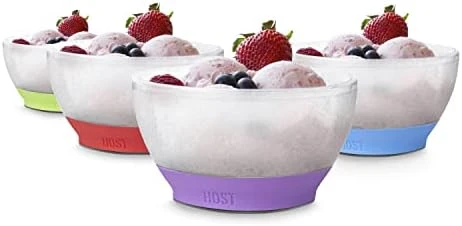 - FROZEN TREATS STAY FROSTY – The Host Ice Cream freeze bowl is freezable, with double-walled BPA-free plastic construction. This lets it get ice-cold and stay cold for hours, keeping your ice cream, frozen yogurt, frozen custard and other treats chilled.