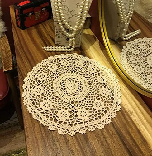 - Size: round place mats Diameter 12 inches(30cm). Due to hand crochet,the size have a little random error 5%-8%.