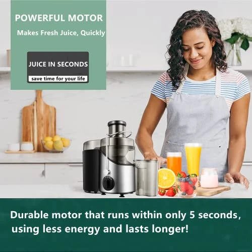 Juicer Extractor 400W Machines, 3″ Feed Chute Juice Centrifugal For Whole Fruit And Vegetables, BPA Free, 3 Speeds Stainless Steel Juice Maker, Detachable, Easy To Clean (Brush Included)