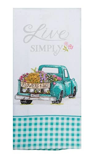 - (1) 16 in x 26 in Dual Purpose Terry Towel, featuring a truck with a bed full of flowers. 100% Cotton