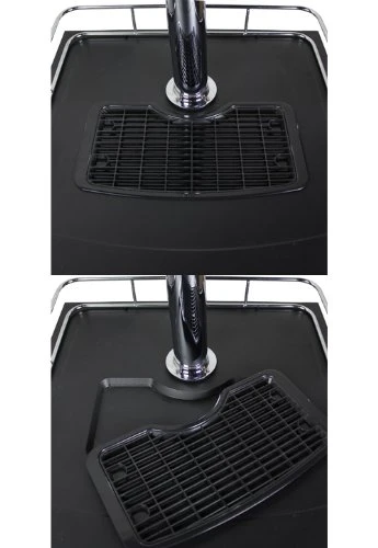 - STYLISH AND CONVENIENT DESIGN: Your kombucha kegs are stored in a sleek black cabinet with a matte black door that will look great with any decor. It features locking casters that allow you to easily move it from room to room, a removable, dishwasher-safe recessed drip tray with a plastic grill for easy clean-up, and an attractive chrome safety rail that helps keep mugs and glasses from sliding off of the countertop. The kombucharator measures 33.25″ H x 24″ W x 25″ D.
