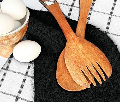 - VALUE PACK – Set includes 06 cotton dish towels with three black and three white dobby weave style kitchen towels measuring 15 x 25 inches