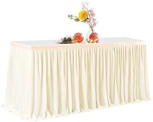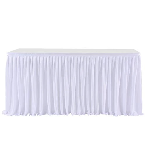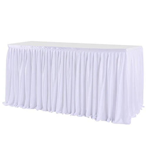 Leegleri White Polyester Pleated Table Skirt For Rectangle Table 6 Ft,Ruffle Tutu Table Cloth For Wedding,Baby Shower,Birthday Party,Banquet