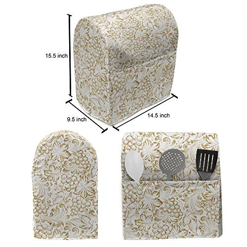 Lunarable Wine Stand Mixer Cover, Grape Vine Classical Victorian Pattern Invitation Wine And Dine Illustration, Kitchen Appliance Organizer Bag Cover With A Pocket, 6-8 Quarts, White