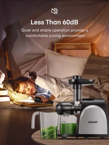 - 【Low-Noise Motor】Our slow masticating juicers operate silently with a 150W DC motor that produces less than 60 decibels of noise. The low-speed processing of cold-pressed juicers gives them a distinctive advantage of low noise, making them quieter than conventional juicers. You can use the juicer whenever you need it without disturbing anyone.