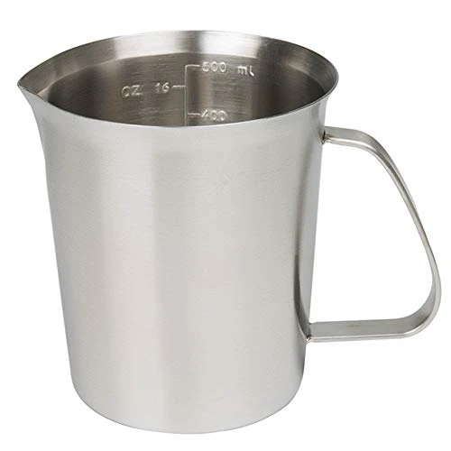 - ✔ MEASUREMENT SCALES ON BOTH SIDES INSIDE: The permanently measuring scales lines (ounces and milliliters) on the both insides of stainless steel measuring cup are easy to read, the units are OZ, ML. The ounce measurement starts from 4 oz to 16 oz with 4 oz step value. The liter measurement starts from 100 ml to 500 ml with 100 ml step value. The width mouth of the measuring cup is 3.8 inch; the bottom width is 3 inch; the height is 4.2 inch.