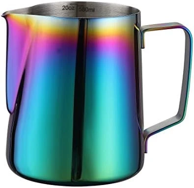 - ☕【MULTIPLE FUNCTIONALITY】: The milk frother pitcher is perfect to froth or steam milk for Latte art, espresso,cappuccino and measure liquid volume. Drip-less spout design makes it easy to pour and separate froth from liquid. Comfortable and sturdy handle design makes it easy grid.