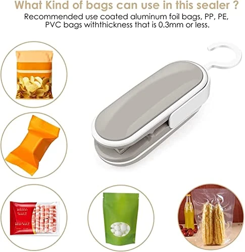 - ●KEEPS FOOD UNSPOILED AND PREVENTS BAD ODOR: The mini sealer is used to make an airtight seal on plastic bags, which consequently helps to keep the food inside it fresh and unspoiled for a long time. It can thus also help you stay healthy by not letting your food get damaged due to exposure.