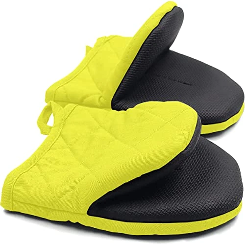 - Non-slip grip – The neoprene texture helps keep things from slipping. Textured silicone surface inside the jaws give a better grip on pots and pans. Easy touch also I use it for open jar! Each mitt can be used on your left or right hand, ideal for when you’re in a rush