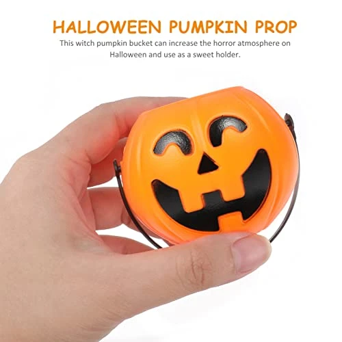 - Candy pails made of durable molded orange plastic with swiveling black plastic handles that can hold up party treats.