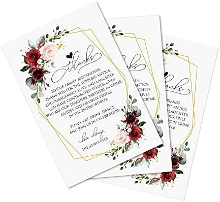 - QUALITY DESIGN: Our 4×6 cards are printed on 100lb premium uncoated white card stock — cards fit nicely onto a plate or tucked in a napkin at each table place setting.