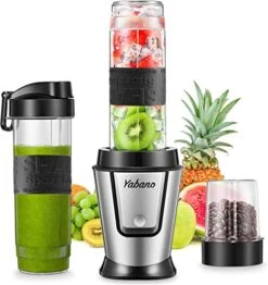 - ON THE GO – Yabano personal blender with 2 x 20oz travel bottle and 2 x travel lid, you can make your favourite beverage and then taken and go. And both bottles can fit in car cup holder.