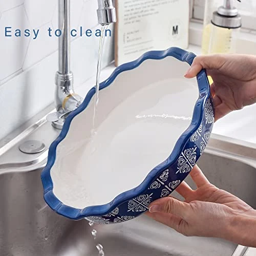- 【CONVENIENT CLEANING】 Whether you want to clean the pie dish by hand or with your dishwasher, it won’t matter because the smooth porcelain texture makes cleanup a breeze. and It is suitable for microwave, freezer and oven.