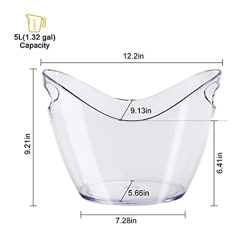 - Versatile and Multiple Usage- The plastic bucket has a large capacity of 5liters/1.32gal,which makes for a great multipurpose storage container,BPA free,ensuring food grade quality,not only used as a ice beverage bucket,it is also a great idea to store fruits,gardening supplies, toys, candy,salad, chips, snack and more,suit for party and any occasions like Camping,Housewarmings, Christmas, Festivals, Birthday, and Wedding.