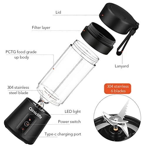 - 🍅【Food Grade Material & Safety Protection】Portable blender is made of food-grade PP & ABS material,non-toxic PCTG material & eco-friendly, BPA free; The built-in magnetic secure switch will make this mini blender stop blending when the cup part and base are not assembled tightly or correctly. Meanwhile, travel blender comes with an overheating prevention.