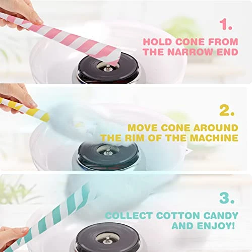 - FOR ALL AGES: Each cone is 11 inches long with the width of 1.2 inch at the top. It is convenient to use with either a home or a commercial cotton candy machine, and it is easy to hold for any kids and adults.