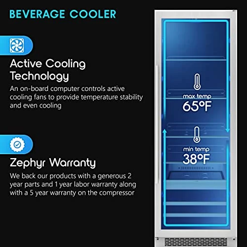 - Active Cooling Technology / Vibration Dampening System / Carbon Filter Air Filtration /Door Open Alarm /304-grade Stainless Steel / Volume 15.7 cu/ft / Sound Level 44 dBA
