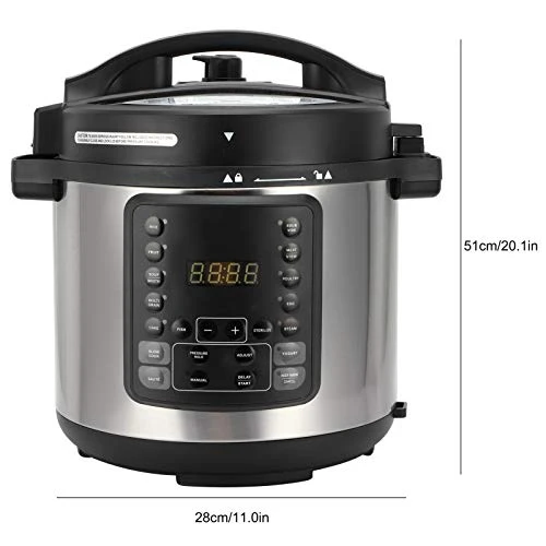 - 【Widely Application】6L pressure cooker fryer, including steaming, pressure cooking, slow stewing, fryer, food dehydration, baking/roast beef, used to prepare dishes with more flavors.Use circulating hot air to cook food with no or very little oil to help you cook chic, potato chips, and steaks.slow cookers slow cookers. slow cookers.