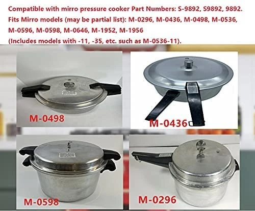 - Replacement pressure cooker gasket for select 4, 6 and 8 quart pressure cooker,replacement mirro pressure cooker Part Numbers: S-9892, S9892, 9892. Fits Mirro models (may be partial list): M-0296, M-0436, M-0498, M-0536, M-0596, M-0598, M-0646, M-1952, M-1956 (Includes models with -11, -35, etc. such as M-0536-11).