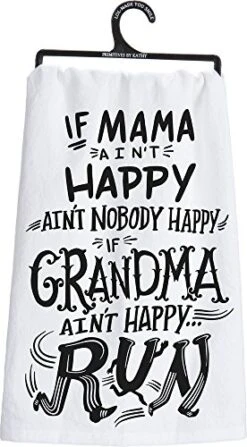 Primitives By Kathy LOL Cotton Dish Towel, 28″ Square, If Grandma Ain’t Happy