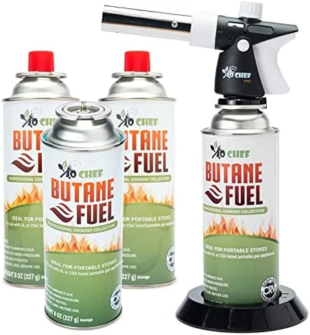 - SAFETY IS OUR PRIORITY – Jo Chef culinary butane lighter has a safety lock that prevents accidental torch activation. Also, for your safety, The kitchen flame torch is shipped with 1 8oz Canister. Unmatched design standards for pro chefs like you!