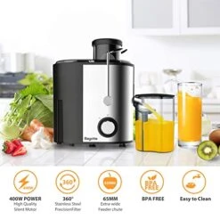 Juicers, Bagotte Centrifugal Juicer With 65mm Wide Feed Chute, 2 Speed Juicer Machines For Vegetables And Fruits, BPA-Free Juice Extractor With 304 Stainless Steel, Easy To Clean