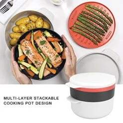 Microwave Rice Cooker,Non-stick Round Microwave Rice Cooker Steamer Set,Multifunctional Microwave Cookware,for Rice,Pasta,Vegetables,Dishwasher Safe