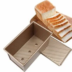 - 🍰【Non-Stick Bread Pan and Bottom Vent】 – You can easily pop out bread from gold toast pan without harming its appearance. Secondly, the bottom vent design allows the dough to be heated more evenly and has a richer taste. Note: When you need to bake with batter, you need to add a piece of parchment.