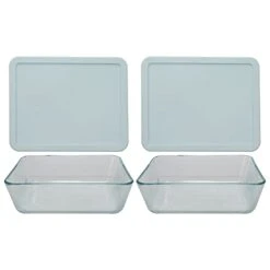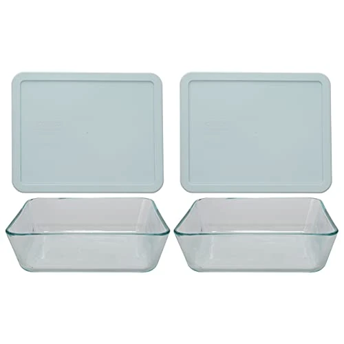 - Included: (2) Pyrex 7212 Glass Dishes & (2) 7212-PC Muddy Aqua Lids
