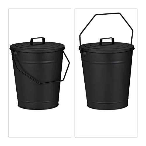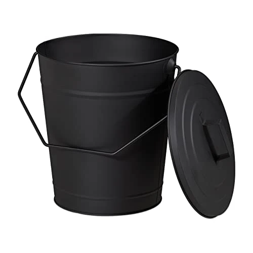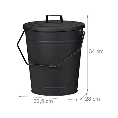 The black ash bin made of powder-coated steel is the ideal addition to your fireplace accessories. The large ash bin offers enough space for the ashes of a burnt down fireplace. The lid closes the fireplace bucket securely and protects the ashes from blowing away. The practical handle makes it easy for you to carry. The versatile steel bucket is also suitable as an accessory for stoves or the barbecue in the garden and for storing charcoal, pellets and briquettes.Ash bucket in detail- Overall dimensions H x W x D: approx. 34 x 32.5 x 28 cm- Bucket dimensions H x D: approx. 30 x 27.5 cm- Volume: approx. 12 litres- Weight: approx. 1.2 kg- Material: Steel- Colour: BlackSmall ash bucket with lid- For cooling hot ashes and embers- For cleaning fireplaces, stoves, barbecues- Lid with handle protects from scattering- Handle for easy transport- Also for storing briquettes etc.Included in delivery- 1x ash bucket with a lid- Decorative items are not included